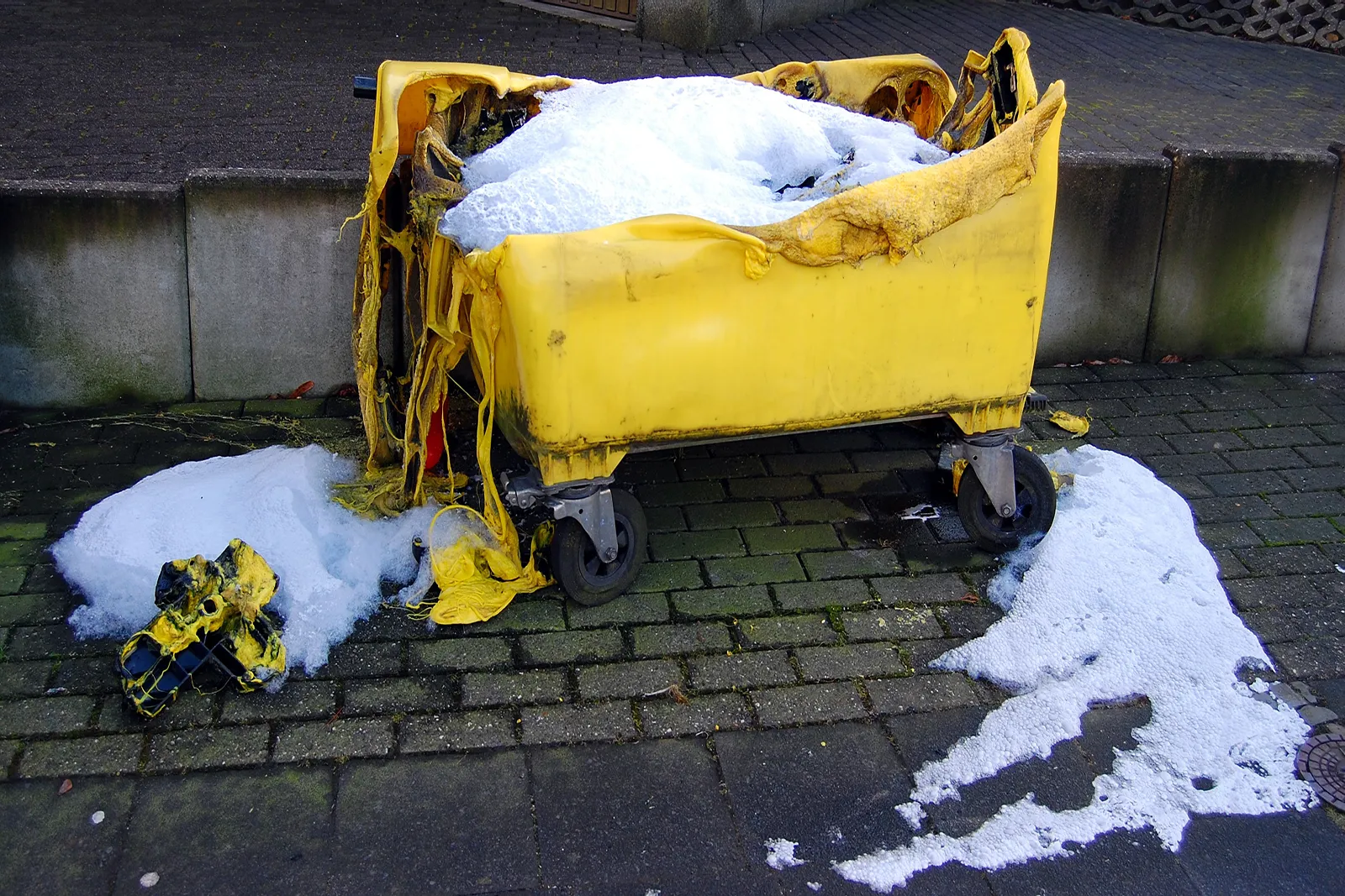 Eine brennende Mülltonne direkt an der Außenwand einer Kita hat am Sonntagabend für einen Feuerwehreinsatz gesorgt.