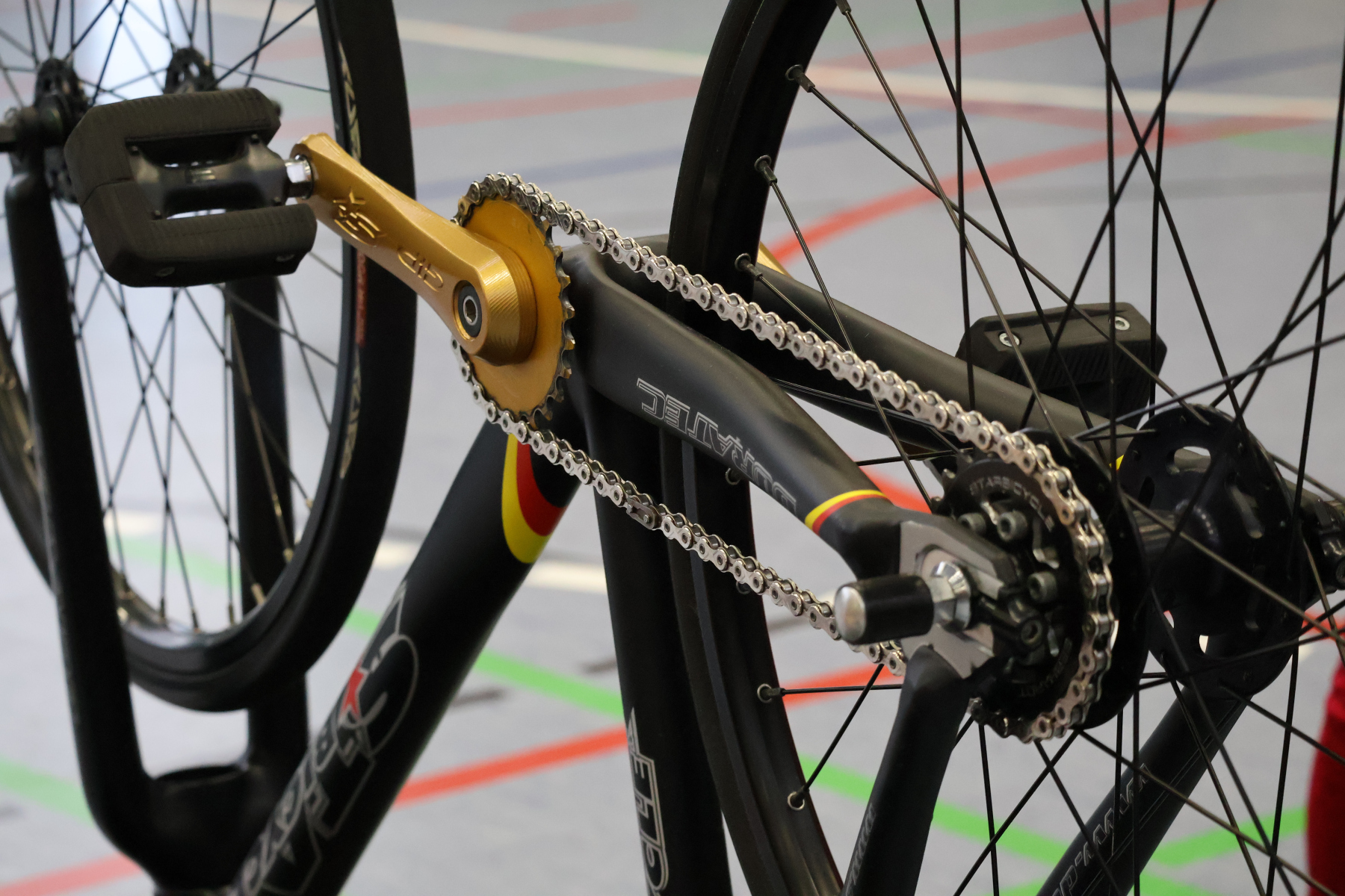 Mit einem gewöhnlichen Straßenrad hat das Sportgerät allerdings wenig gemein. Im Gegenteil: Die Kunsträder sind speziell für diesen Sport entwickelt, einige sogar auf die Fahrerinnen individuell angepasst. Mal mit Kette, mal mit einem Zahnriemen in ihrer Mitte – und mit einem Preis, der schon einmal bei 3.000 Euro liegen kann. Also eine Anschaffung, die man nicht nebenbei tätigt.