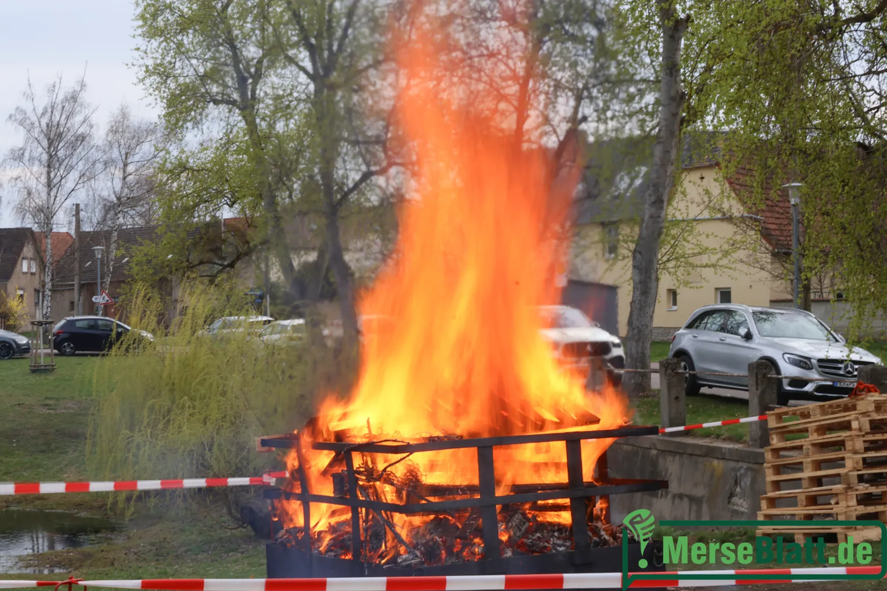 Schon gegen 16 Uhr füllte sich der Platz am Dorfteich mit Familien, Kindern, Nachbarn. Die Meuschauer Pfingstburschen hatten zum Osterfeuer eingeladen – und gefühlt war der ganze Ort gekommen.